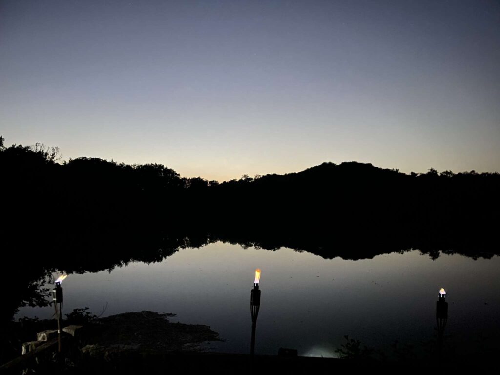 Mit verbundenen Augen wurden sie zu einem See mit herrlichem Blick geführt, um mit Gitarre und Fackeln ihr Versprechen abzulegen.